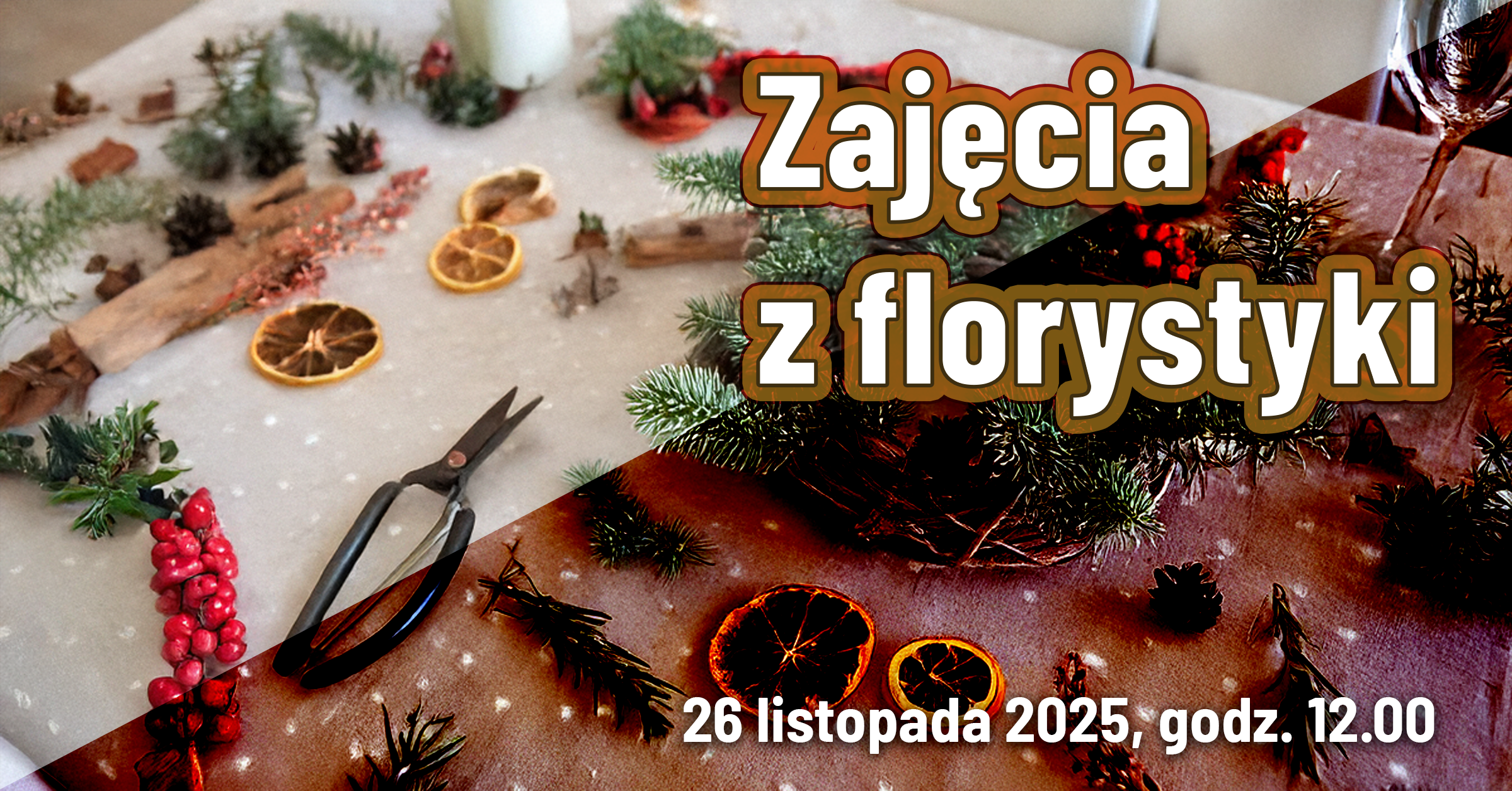 Zapraszamy serdecznie na warsztaty florystyczne, które odbędą się w środę, 26 listopada 2025 r., w godzinach 12.00–14.00.