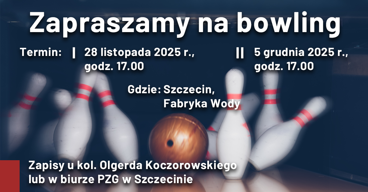 Zapraszamy członków PZG Szczecin na wspólne spotkanie w Bowling Club Fabryki Wody (ul. 1 Maja 41, Szczecin).